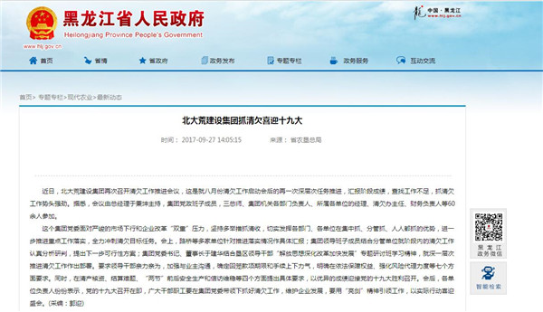 近日,筆者在公共媒體平臺(tái)了解到,去年至今,北大荒建設(shè)集團(tuán)對(duì)上報(bào)道《北大荒建設(shè)集團(tuán)抓清欠喜迎十九大》《北大荒建設(shè)集團(tuán)“亮劍”力促問題整改》《北大荒建設(shè)集團(tuán)榮獲省級(jí)行業(yè)四項(xiàng)殊榮》三篇優(yōu)秀新聞報(bào)道被省人民政府網(wǎng)站——中國(guó)●黑龍江原文收錄轉(zhuǎn)載。這是繼集團(tuán)第五分公司華康30萬(wàn)糧食倉(cāng)儲(chǔ)建設(shè)項(xiàng)目,被省廣播電視臺(tái)《新聞聯(lián)播》節(jié)目《火熱龍江譜華章(十三)項(xiàng)目建設(shè)掀熱潮》專欄報(bào)道后,再一次引起省級(jí)重要媒體的高度關(guān)注。