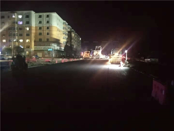 五處援建的伊春市政路面工程,全長2140米寬24米,地處林都——伊春繁華的中心地帶。此時,當(dāng)?shù)匾归g氣溫已接近0℃。為保證施工質(zhì)量,主體工程必須在25天內(nèi)完成。由于市里建筑周邊升級改造,造成道路狹窄,施工界段道口多,車輛多,給施工帶來了巨大不便。項(xiàng)目部針對實(shí)際情況,制定了應(yīng)對措施:施工采取24小時倒班制,要充分利用夜間車流量小的時段加快施工進(jìn)度。