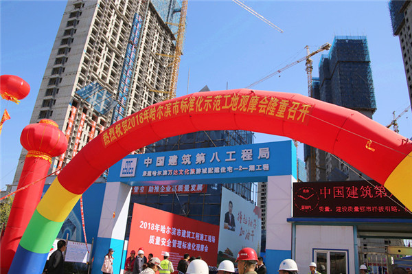 為進一步推動集團工程質(zhì)量安全管理標準化提升,加強精細化管理,促進創(chuàng)建精品工程,近日,集團工程管理部、安全辦聯(lián)合組織各單位總工、工程科、安全科人員,在哈項目經(jīng)理、技術(shù)、質(zhì)量等負責人40余人,參加了哈爾濱市建筑業(yè)協(xié)會工程質(zhì)量監(jiān)督與檢測分會組織,中建八局承辦的哈爾濱萬達文化旅游城配建住宅-2一期項目現(xiàn)場觀摩會,參觀了中建八局工程質(zhì)量常見問題的專項治理、施工現(xiàn)場質(zhì)量安全標準化樣板工地、綠色施工管理理念、質(zhì)量管理體系標準化展示、質(zhì)量管理行為標準化展示、質(zhì)量過程管控標準化展示、施工工藝標準化展示、細部節(jié)點標準化展示、BIM技術(shù)展示、新技術(shù)應(yīng)用展示等標準做法。
