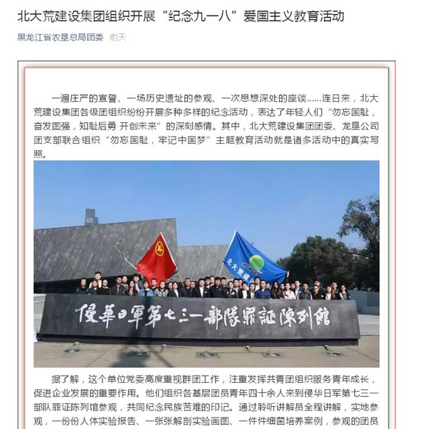 據(jù)了解,集團(tuán)黨委高度重視新聞宣傳工作,作為黨委和經(jīng)營工作的“雙”喉舌,他們堅(jiān)持以輿論凝聚士氣、以新聞提升士氣,全力營造濃厚干事創(chuàng)業(yè)氛圍。這三篇文章分別為《北大荒建設(shè)集團(tuán)組織團(tuán)員青年參觀七三一部隊(duì)罪證陳列館》《北大荒建設(shè)集團(tuán)致力打造“三個(gè)堡壘”》《農(nóng)墾路橋公司“四個(gè)創(chuàng)新”強(qiáng)黨建》,分別刊發(fā)于18日一版、三版醒目位置。上述多篇文章結(jié)合集團(tuán)黨委開展“北大荒堡壘工程”,實(shí)施“黨建+”重要載體,在找活源、挖市場(chǎng)、建項(xiàng)目等重要工作上,貼近實(shí)際,緊扣熱點(diǎn),呼應(yīng)“國企黨建中心工作”,映襯創(chuàng)新黨建工作載體,就黨建、團(tuán)建等進(jìn)行宣傳報(bào)道,可看度較高。