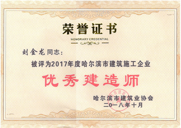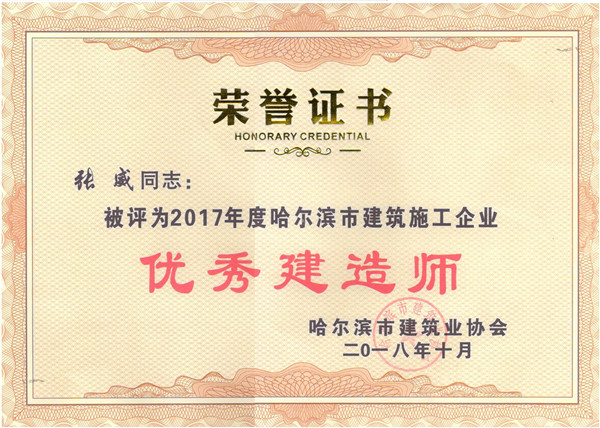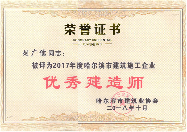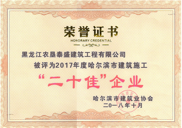 喜訊傳來。近日,哈爾濱市建筑業(yè)協(xié)會公布了2017年度哈爾濱市建筑業(yè)“二十強”企業(yè)、“優(yōu)秀建造師”名單,北大荒建設(shè)集團榮登企業(yè)光榮榜,榮獲“二十強”企業(yè)榮譽,張威、劉廣儒等同志榮獲“優(yōu)秀建造師”稱號,再次為打造優(yōu)秀企業(yè)文化名片貢獻新力量。