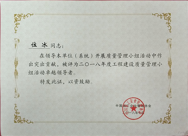 近日,在中國(guó)施工企業(yè)協(xié)會(huì)在廈門舉辦的2018年全國(guó)工程質(zhì)量管理小組(QC小組)成果發(fā)布會(huì)上獲悉,黑龍江墾區(qū)龍墾建設(shè)工程總公司榮獲了全國(guó)優(yōu)秀企業(yè)、卓越領(lǐng)導(dǎo)者、優(yōu)秀推進(jìn)者及全國(guó)“優(yōu)秀質(zhì)量管理小組”一等獎(jiǎng)四項(xiàng)殊榮。這是這個(gè)公司繼獲得2018年全國(guó)優(yōu)秀施工企業(yè)和全國(guó)建筑業(yè)優(yōu)秀企業(yè)家兩項(xiàng)殊榮后,再次為北大荒建設(shè)集團(tuán)爭(zhēng)光添彩獲得的國(guó)家級(jí)殊榮。