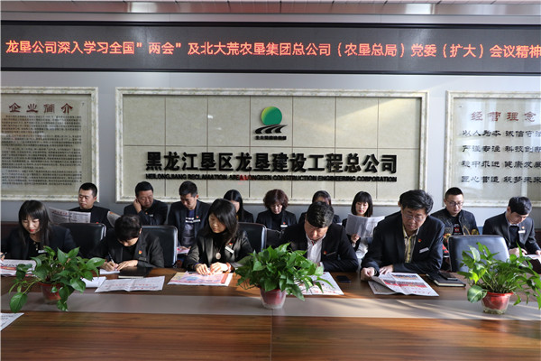 近日,龍墾公司黨委在會議室組織集中學習全國“兩會”及北大荒農(nóng)墾集團總公司(農(nóng)墾總局)黨委(擴大)會議精神,圍繞“兩會”和黨委(擴大)會議對當前和今年發(fā)展思路、工作思路進行部署。
