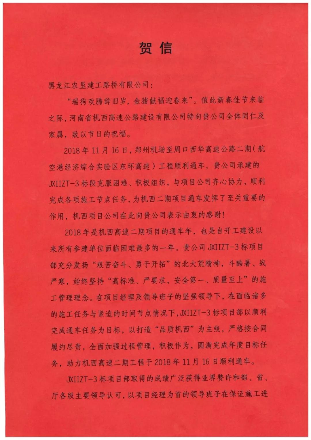 賀信中說:北大荒路橋企業(yè)在機(jī)西二期ZT—3標(biāo)項(xiàng)目建設(shè)中,以打造“品質(zhì)機(jī)西”為主線,取得了部、省、廳各級(jí)領(lǐng)導(dǎo)專家的認(rèn)可。在施工中堅(jiān)持科學(xué)創(chuàng)新,采用多項(xiàng)施工新技術(shù),在項(xiàng)目交驗(yàn)中,刷新了河南省內(nèi)高速公路路面平整度指標(biāo)的記錄。在國內(nèi)首例成功應(yīng)用波形鋼腹板工字梁預(yù)制等。機(jī)西高速二期工程的建成通車,對中原地區(qū)經(jīng)濟(jì)社會(huì)發(fā)展書寫下輝煌的一筆,也為該公司高速公路建設(shè)施工添上了新的業(yè)績!(路橋公司 劉鋒 戴興)