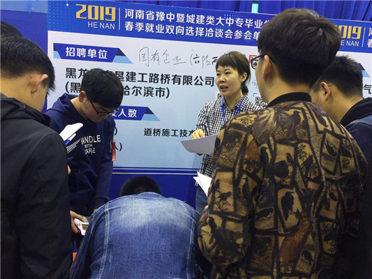 隨著河南靈寶項目開工在即,4月中下旬,公司人力資源部先后到河南工程學(xué)院、中原工學(xué)院、河南城建學(xué)院等院校參加雙選招聘會,受到了各大院校的高度重視,特別是在河南城建學(xué)院參加雙選會期間,河南省教育廳大中專學(xué)生就業(yè)服務(wù)中心副主任李勝利、校黨委書記張惠貞、副校長王靖一行親臨路橋公司展位,了解企業(yè)性質(zhì)、薪資待遇、招聘需求及招聘效果,并表示,“為使畢業(yè)生就業(yè)市場呈現(xiàn)區(qū)域多元化布局,黑龍江農(nóng)墾建工路橋有限公司這家企業(yè)是必不可少的一環(huán)”,誠邀農(nóng)墾建工路橋公司能夠年年來豫參會,建立長期校企合作關(guān)系。河南衛(wèi)視、平頂山電視臺、平頂山教育電視臺、平頂山晚報等多家媒體現(xiàn)場采訪報道。