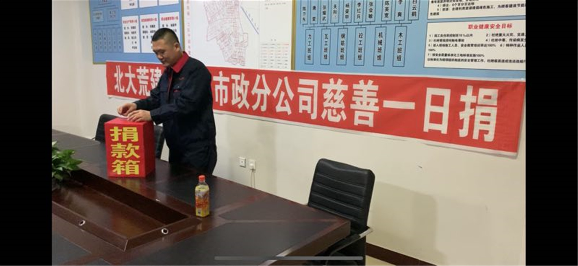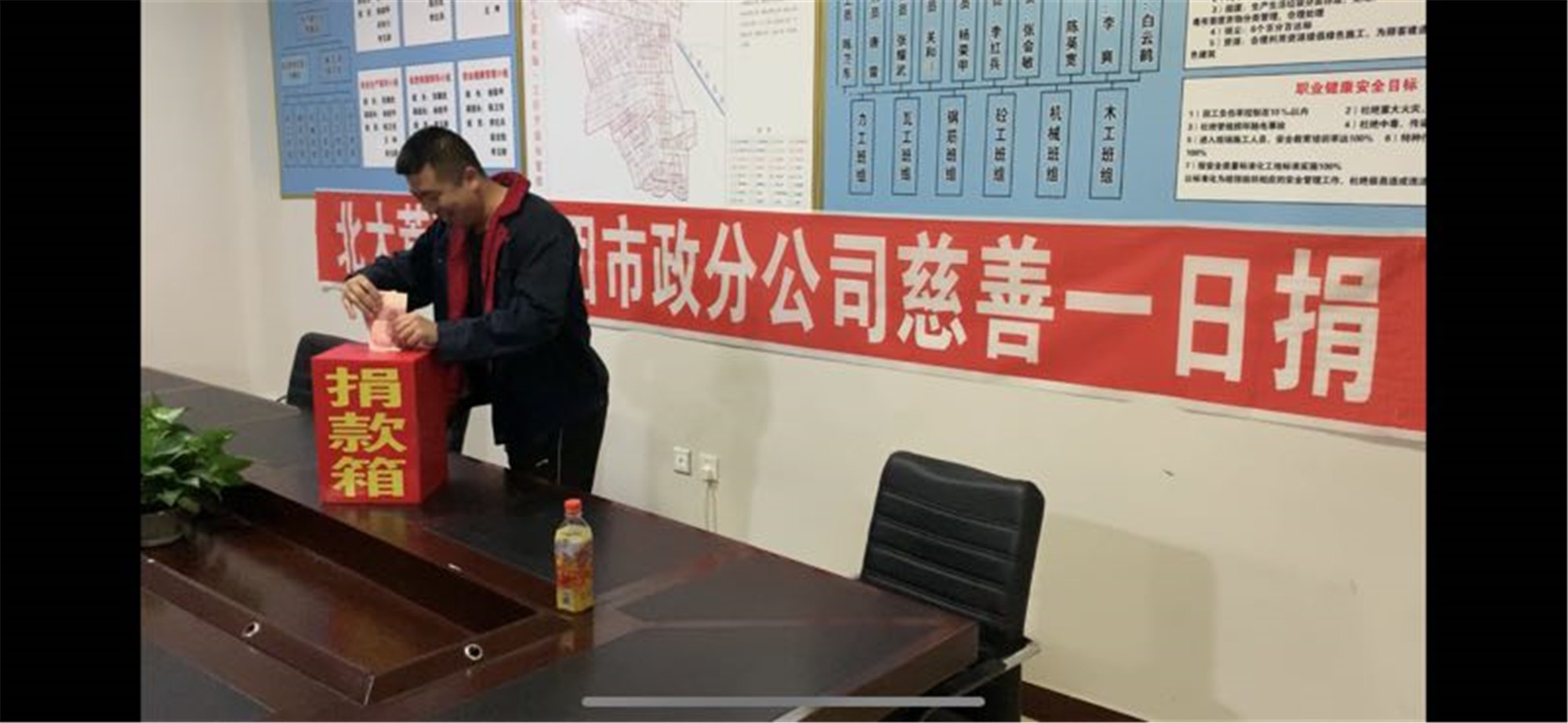 近日,市政分公司積極響應(yīng)集團(tuán)工會(huì)號召,組織公司機(jī)關(guān)及青龍山項(xiàng)目部的員工開展“慈善一日捐”“慈善情暖萬家”活動(dòng)。
