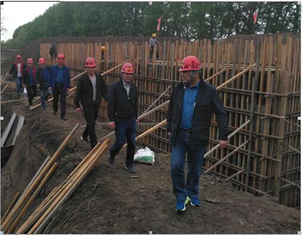 集團(tuán)總經(jīng)理、建三江分公司水利指揮部總指揮史云鵬同志蒞臨項(xiàng)目進(jìn)行檢查指導(dǎo),對(duì)工區(qū)每一個(gè)施工現(xiàn)場(chǎng)進(jìn)行了仔細(xì)的檢查,總經(jīng)理不時(shí)詢問(wèn)在建項(xiàng)目的人、機(jī)、料進(jìn)場(chǎng)情況,是否能夠保證施工進(jìn)度等??偨?jīng)理在檢查中強(qiáng)調(diào),現(xiàn)在正值施工的大好季節(jié),要抓住現(xiàn)在的天時(shí)地利,在保質(zhì)量保安全的前提下,增加技術(shù)人員、勞務(wù)隊(duì)伍,搶進(jìn)度、搶工期,趁凍土層未化透前,把難度大、道路條件差的結(jié)構(gòu)物優(yōu)先完成,雨季時(shí)再著手修建水泥路、砂石路旁的結(jié)構(gòu)物,以最大限度保證施工進(jìn)度。