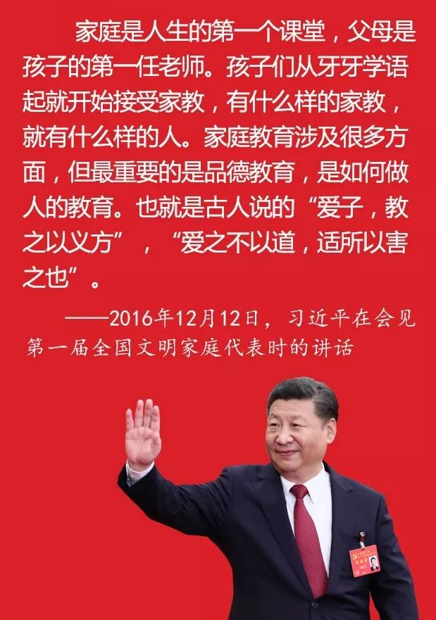 ——2016年12月12日,習(xí)近平在會見第一屆全國文明家庭代表時的講話