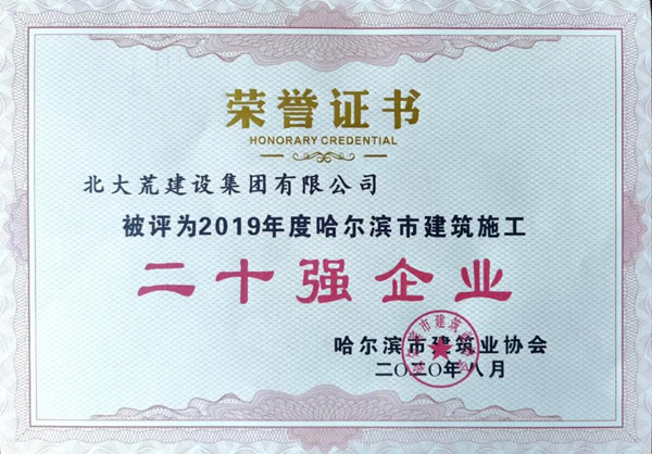 建設(shè)集團榮獲“2019年度哈爾濱市“二十強”建筑業(yè)企業(yè)”等多項表彰