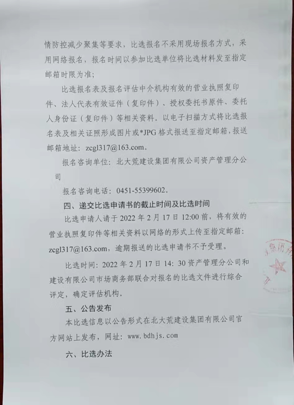 北大荒建設集團有限公司59處受托資產(chǎn)選聘評估中介機構比選公告