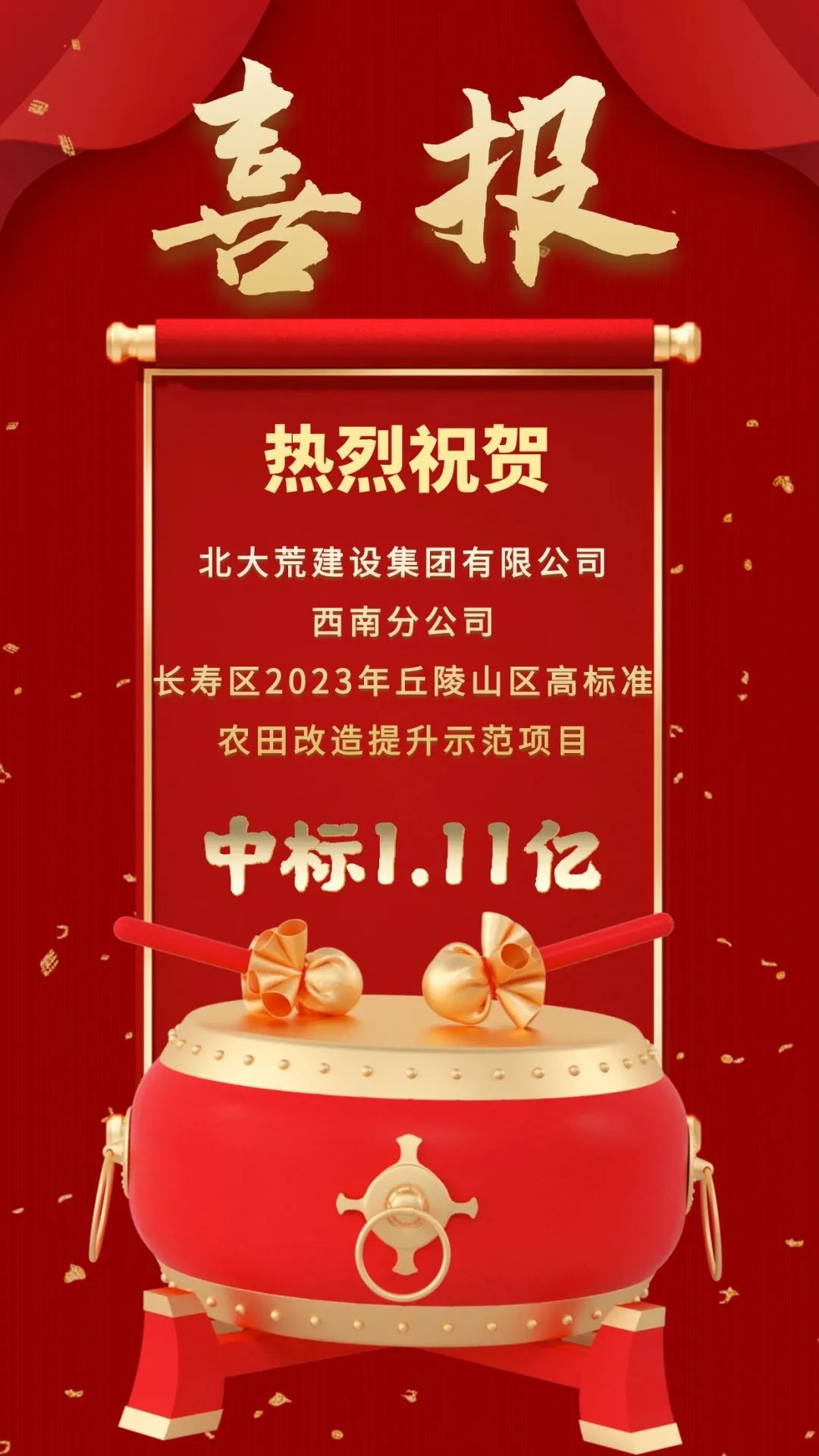 ?喜報!西南分公司中標長壽區(qū)2023年丘陵山區(qū)高標準農(nóng)田改造提升示范項目施工+運營,中標金額1.11億元